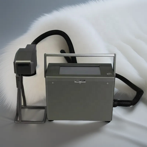 เครื่องทำเครื่องหมายเลเซอร์ไฟเบอร์ขนาดเล็กแบบพกพา30W แบบบูรณาการสำหรับขวดสัตว์เลี้ยงเครื่องเลเซอร์ไฟเบอร์สีทอง